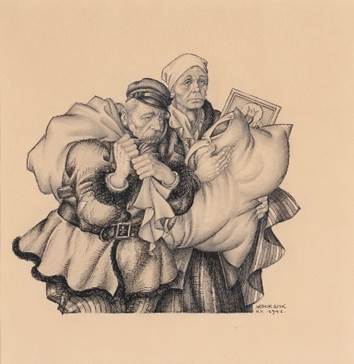 Z cyklu „New Order” pochodzi praca przedstawiająca parę starszych osób, pochodzenia chłopskiego, wyrzucanych z gospodarstwa z powodu działań wojennych. Ten ludzki exodus, tak typowy dla okresu drugiej wojny światowej, budził duże emocje i współczucie artysty. Sztuka Artura Szyka była zawsze zaangażowana po stronie prostego człowieka, niezależnie czy dotyczyło to drugiej wojny światowej, jej polskich czy żydowskich ofiar, czy też obrony praw człowieka.