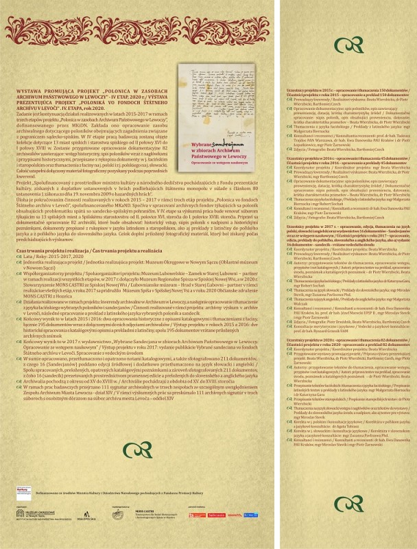Projekt był kontynuacją wspólnych z partnerami słowackimi działań z lat 2015‒2017 i dotyczył opracowania zasobu archiwalnego poloników obejmujących zagadnienia związane z pograniczem sądecko‑spiskim.